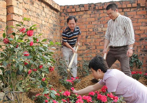 公司员工栽花种树美化家园