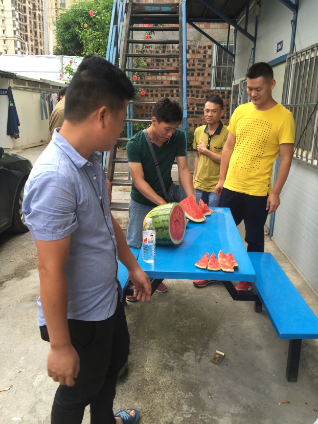 项目部员工吃着爱心西瓜,更觉香甜解暑,表示将将克服酷暑高温,坚守岗位,尽职尽责,积极投身到项目建设中。