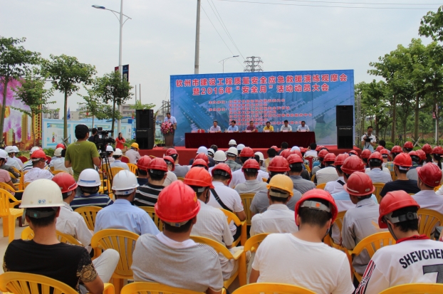 钦州市建设工程质量安全应急救援演练观摩会暨2016年“安全月”活动动员大会现场